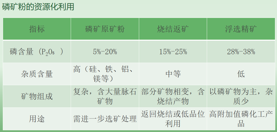精礦粉:中低品位(P2O5<20%)的礦粉通過(guò)浮選、精選,使五氧化二磷得以富集,由此形成的粉料